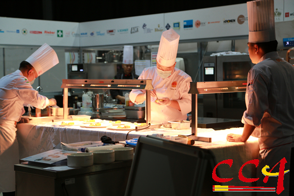 圖為2016年在德國埃爾福特舉行的第24屆奧林匹克烹飪大賽上,中國隊(duì)成員在制作美食。
