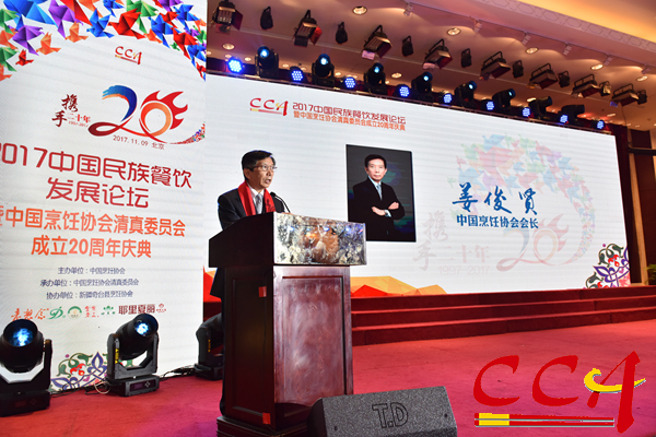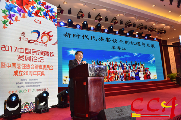 11月9日,2017中國民族餐飲發(fā)展論壇在北京新疆大廈召開,這是中國烹飪協(xié)會學(xué)習(xí)貫徹黨的十九大精神,大力促進(jìn)新時代民族餐飲發(fā)展的實踐行動。此次論壇得到國家民族事務(wù)委員會及全國各民族地區(qū)的高度重視與大力支持,吸引了全國20多個省、自治區(qū)、直轄市及民族地區(qū)的26個少數(shù)民族餐飲行業(yè)代表近300人參會,相聚一堂,共商新時代民族餐飲發(fā)展大計。 中國烹飪協(xié)會會長姜俊賢致辭指出:本次論壇的舉辦是中國民族餐飲發(fā)展史上具有開創(chuàng)意義的一件大事,也是弘揚民族團(tuán)結(jié)精神,匯聚各民族餐飲力量,打響民族餐飲品牌,推動中國餐飲事業(yè)百花齊放的一次盛會。中國清真餐飲業(yè)20年來伴隨著改革開放的進(jìn)程發(fā)生了歷史性、跨越性的巨變,在行業(yè)規(guī)模、企業(yè)管理水平、行業(yè)社會地位以及對經(jīng)濟(jì)的拉動作用等方面都發(fā)生了深刻的變化,實現(xiàn)了多元化、多層次、高水平的蓬勃發(fā)展。在十九大做出中國特色社會主義進(jìn)入新時代的科學(xué)論斷之際,需要我們對20年來中國餐飲、特別是以清真餐飲為代表的民族餐飲的發(fā)展進(jìn)行認(rèn)真的總結(jié)、梳理和提升,這也是中國烹飪協(xié)會舉辦這次論壇的主要目的之一。這次論壇在繼承和弘揚清真委員會良好的工作傳統(tǒng)的基礎(chǔ)上,又提出了新的發(fā)展思路,將清真餐飲擴(kuò)大為民族餐飲,擴(kuò)大了論壇的外延,提升了工作的內(nèi)涵,旗幟鮮明地踐行了習(xí)總書記在十九大報告中指出的,實現(xiàn)中華民族偉大復(fù)興的中國夢是各民族的共同利益,各族文化扎根于中華文化沃土,是中華民族優(yōu)秀文化不可分割的一部分,表達(dá)了全國各族群眾貫徹落實十九大精神,深化各民族共同團(tuán)結(jié)奮斗,共同繁榮發(fā)展的宏心宏愿。本次論壇得到國家民委、中國伊斯蘭協(xié)會高度重視和支持,同時也得到北京、內(nèi)蒙、新疆、陜西、甘肅、云南、貴州等地方餐飲協(xié)會和廣大企業(yè)的大力支持,論壇級別高、內(nèi)容實,具有很強(qiáng)的現(xiàn)實意義和鮮明的時代特征。新時代、新任務(wù)、新發(fā)展,希望這個論壇能成為全國民族餐飲業(yè)凝聚共識,增進(jìn)感情的平臺;成為發(fā)現(xiàn)商機(jī)加強(qiáng)合作的載體;成為我們不忘初心、砥礪前性的新起點。希望與會代表聚焦中國民族餐飲業(yè)經(jīng)濟(jì)發(fā)展,優(yōu)化企業(yè)發(fā)展環(huán)境,把握行業(yè)發(fā)展趨勢,精準(zhǔn)產(chǎn)業(yè)發(fā)展的方向,描繪民族團(tuán)結(jié)的大業(yè),唱出民族餐飲業(yè)發(fā)展的新業(yè)績。姜俊賢會長表示本次論壇一定會成為中國烹飪協(xié)會民族餐飲工作的新起點。