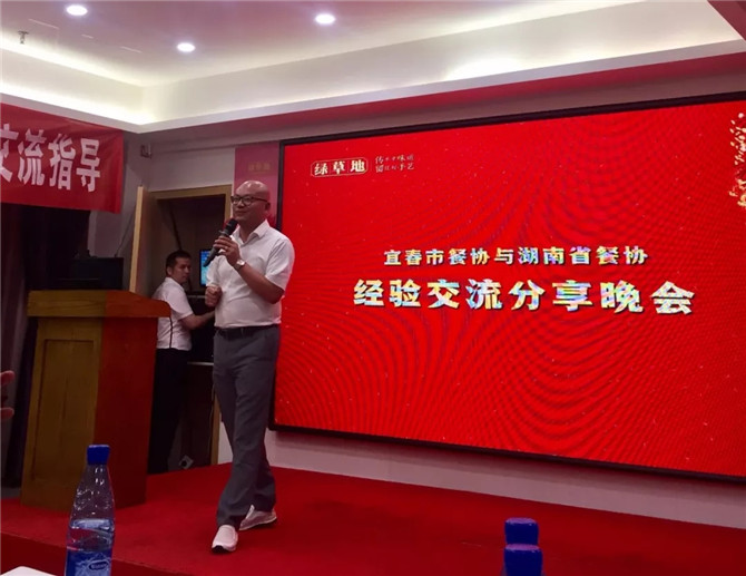 7月10日當晚,在綠草地精品酒店會議廳舉辦了一場【宜春市餐飲行業(yè)商會與湖南省餐飲協會】經驗交流分享晚會。分享晚會上,湖南省餐飲協會終身名譽會長周新潮對宜春市餐飲行業(yè)商會考察團的到來表示熱烈歡迎,并表示:希望兩地加強交流,相互學習,共同推動餐飲行業(yè)健康持續(xù)發(fā)展。